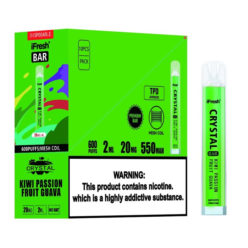 TPD Vape는 모든 관련 규정을 준수하는 TPD 규제 제품입니다. 그것은 고품질의 크리스탈로 만들어졌으며, 확실히 눈을 끄는 매끄럽고 세련된 모습을 제공합니다.출력 전압은 3입니다.6V 및 550mAh의 배터리 용량으로 오래 지속되고 강력한 Vaping 경험을 원하는 사람들에게 이상적인 선택입니다.휴대성이 뛰어나고 이동에 적합합니다..