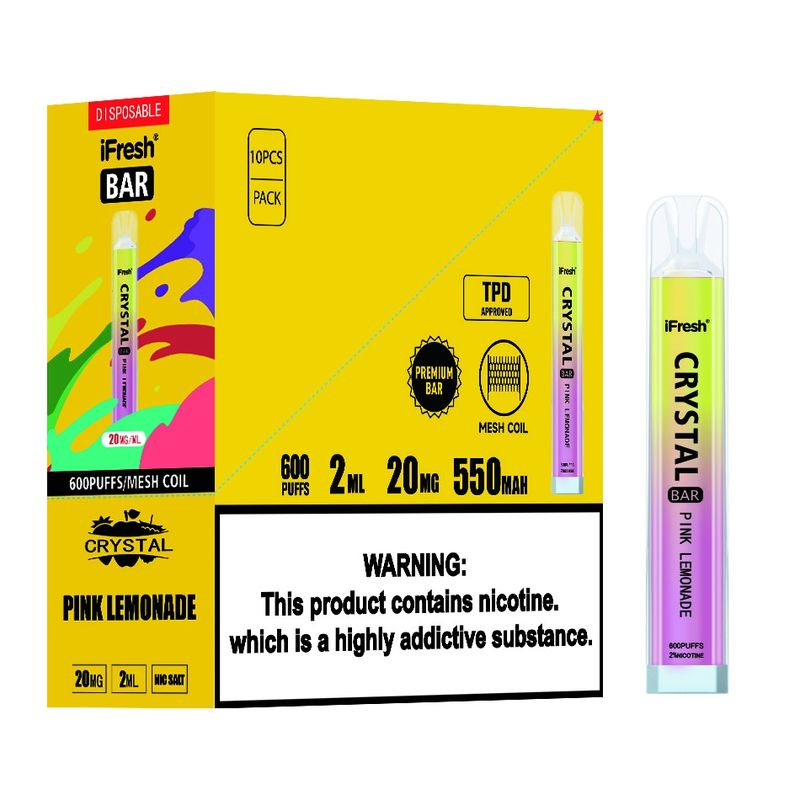 iFresh IFD-102 TPD Vape는 담배제품 지침을 준수하는 담배제품 규제 제품을 찾는 사람들에게 이상적인 선택입니다.이 장치는 결정 물질로 만들어져 있으며 10가지 색상을 선택할 수 있습니다.작은 크기와 550mAh 배터리 용량으로 장치는 휴대 및 사용이 쉽습니다. 3.6V의 출력 전압은 초보자 및 경험이 많은vapeers 모두에게 안전하고 친환경적인 선택이됩니다.